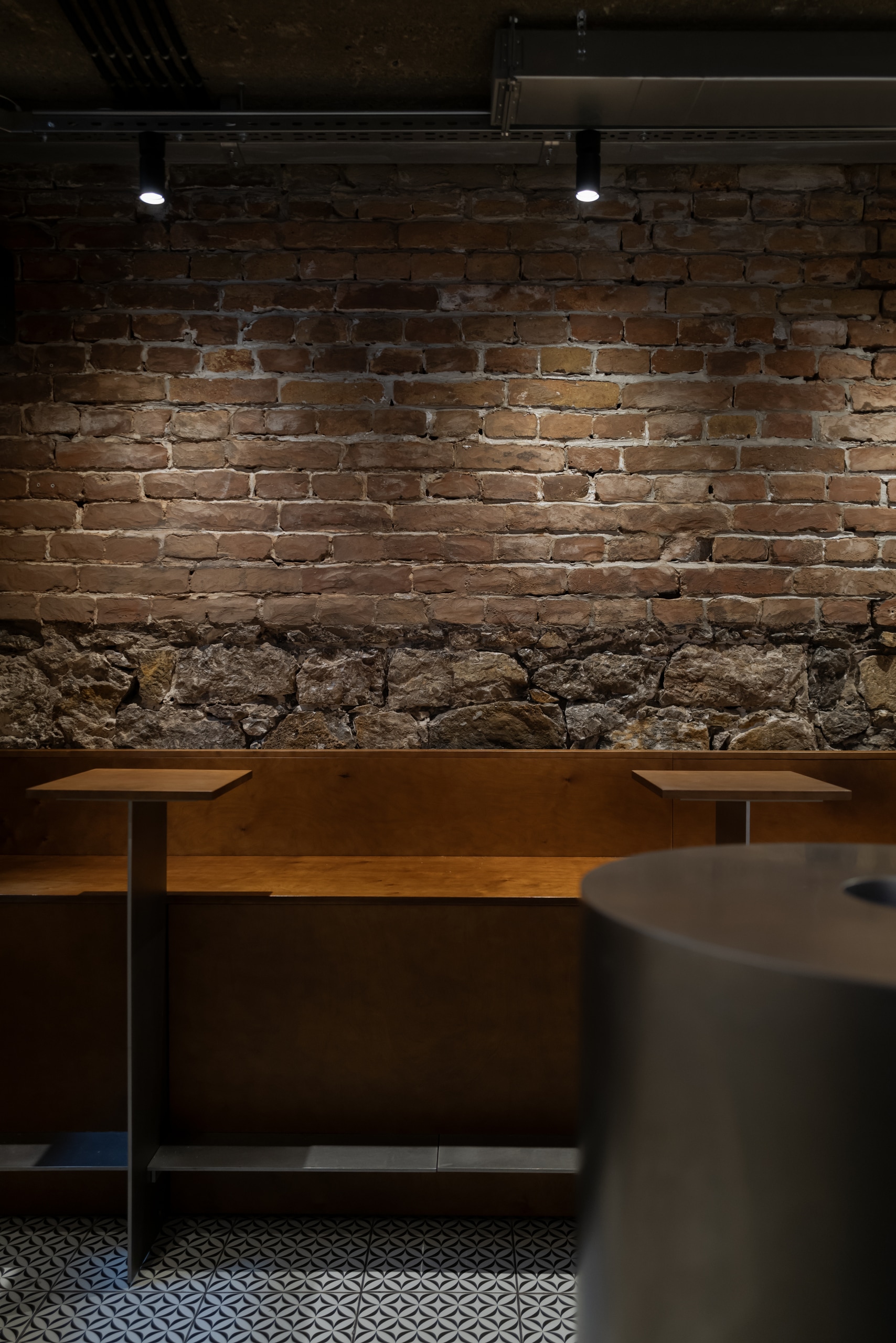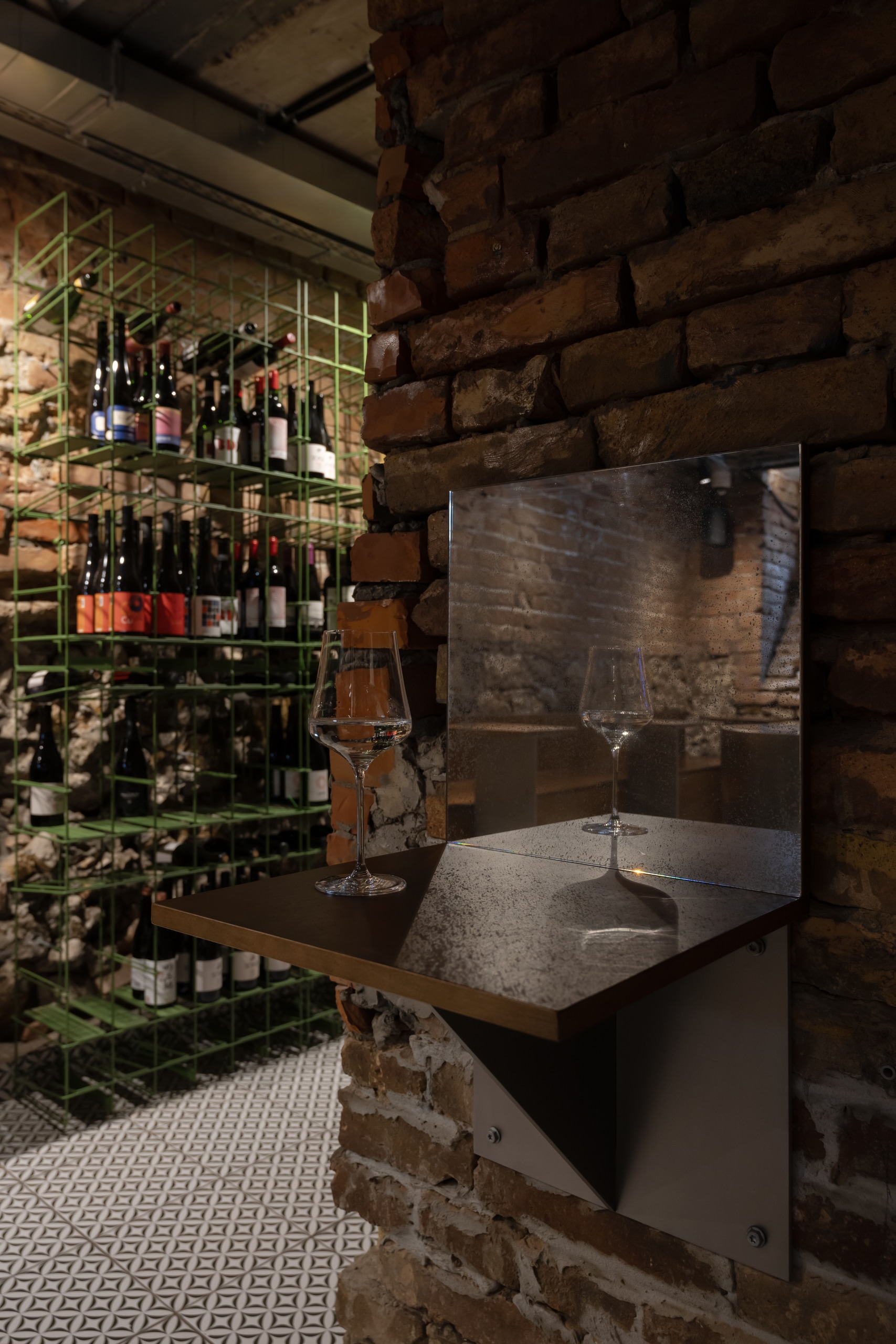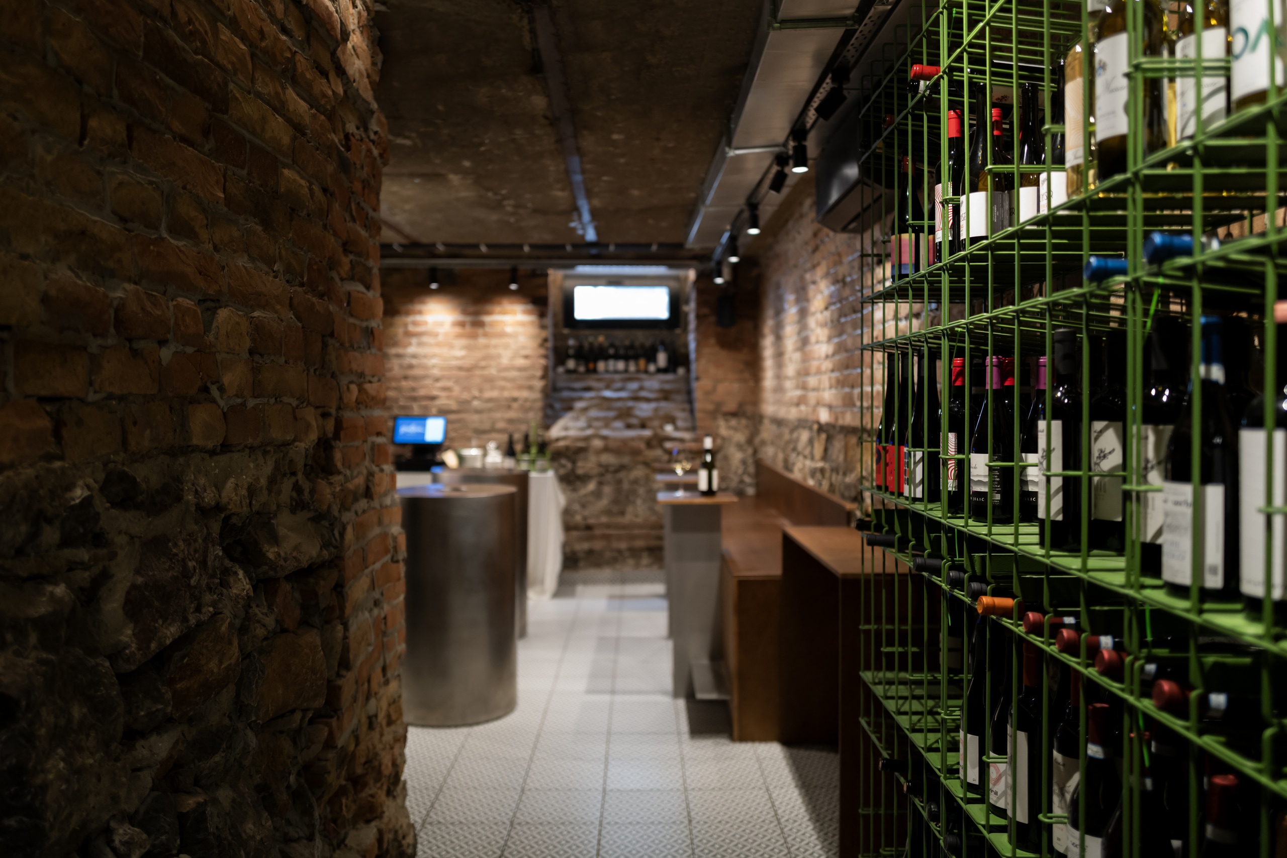 Fresca Cellar is a wine bar and tasting space curated by Katya Ternovskaya. It is the most raw, lively, and rock-and-rollarea of the project. During demolition, original brickwork and stone from the building’s foundation were revealed and carefully preserved, forming the core material identity of the cellar.