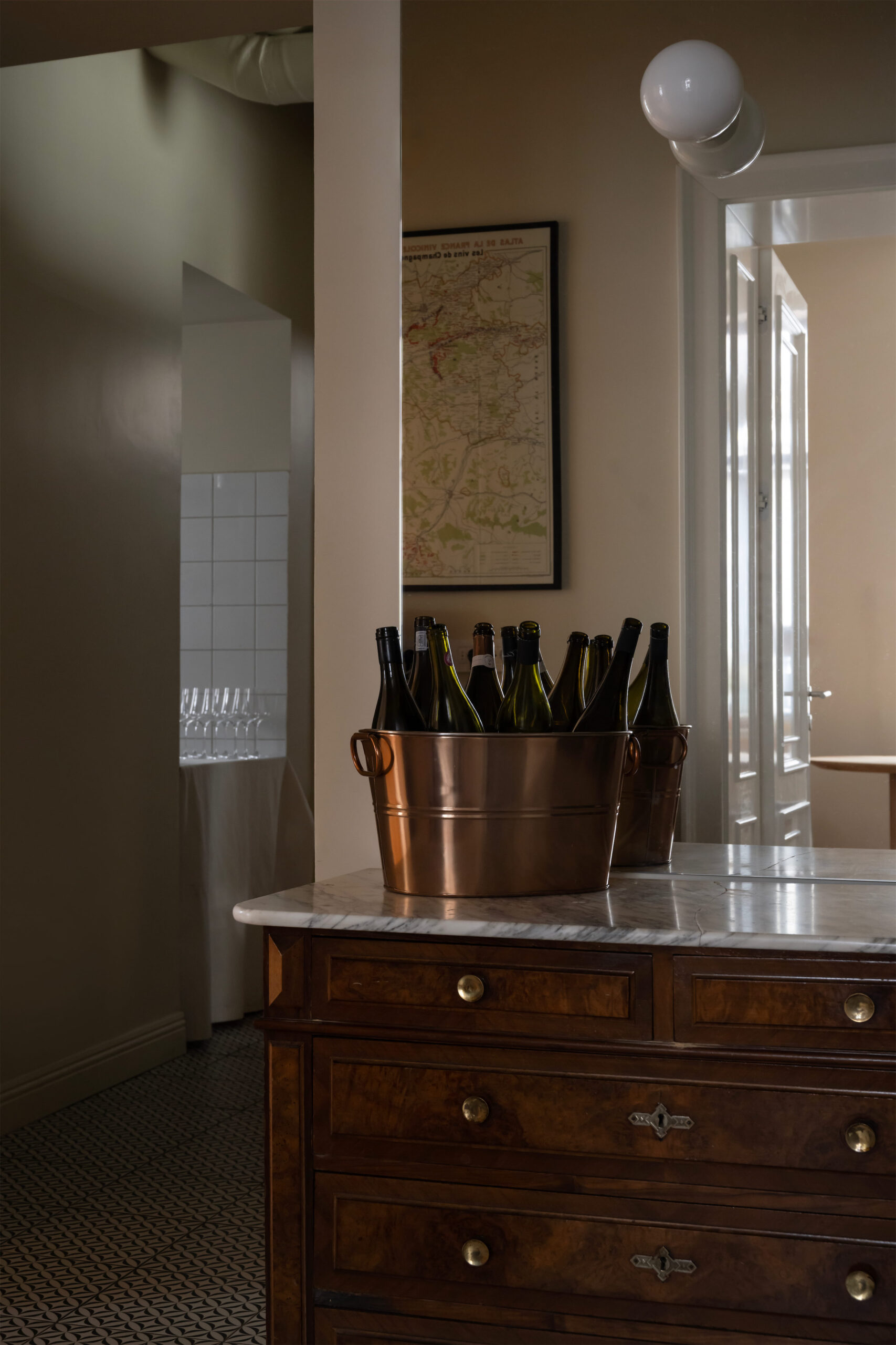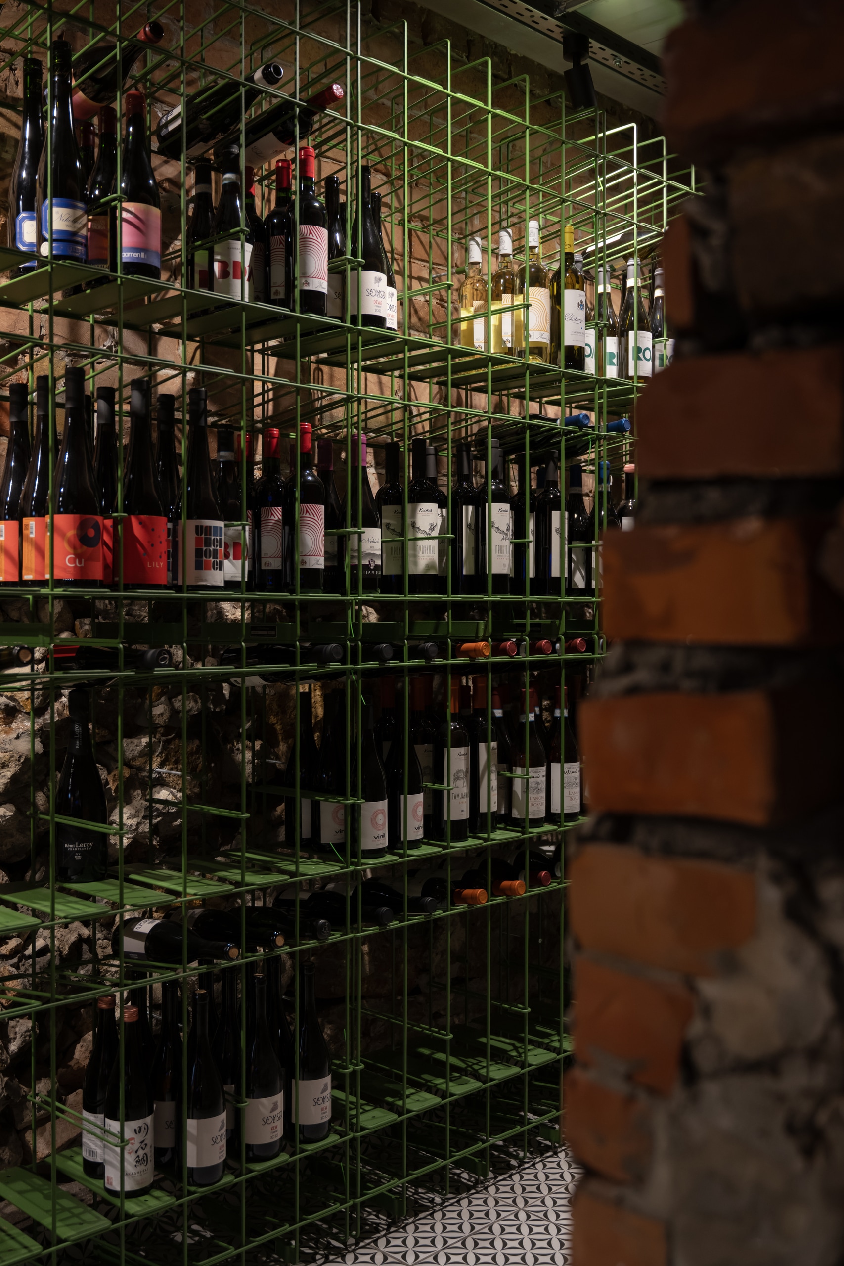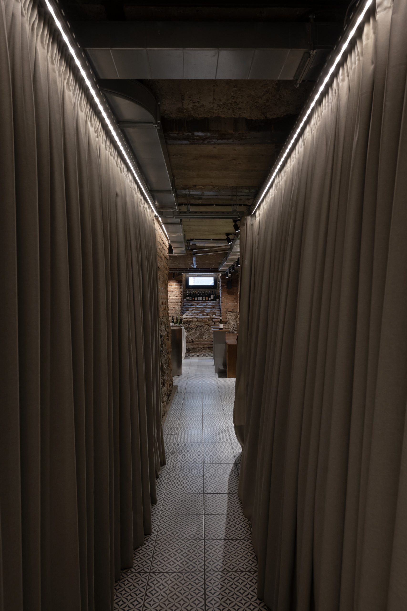 Fresca Cellar is a wine bar and tasting space curated by Katya Ternovskaya. It is the most raw, lively, and rock-and-rollarea of the project. During demolition, original brickwork and stone from the building’s foundation were revealed and carefully preserved, forming the core material identity of the cellar.